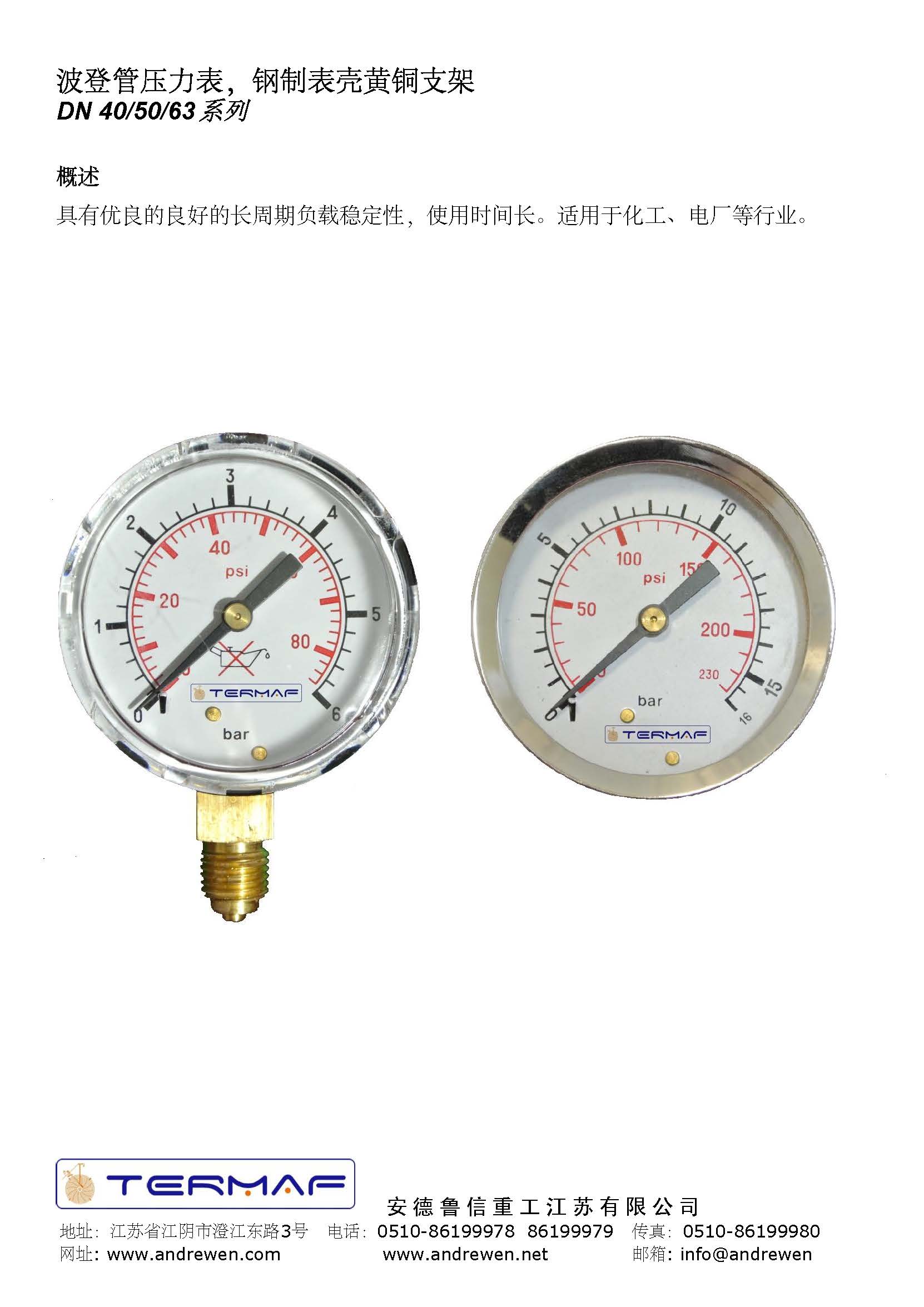 波登管壓力表,鋼制表殼黃銅支架-意大利TERMAF