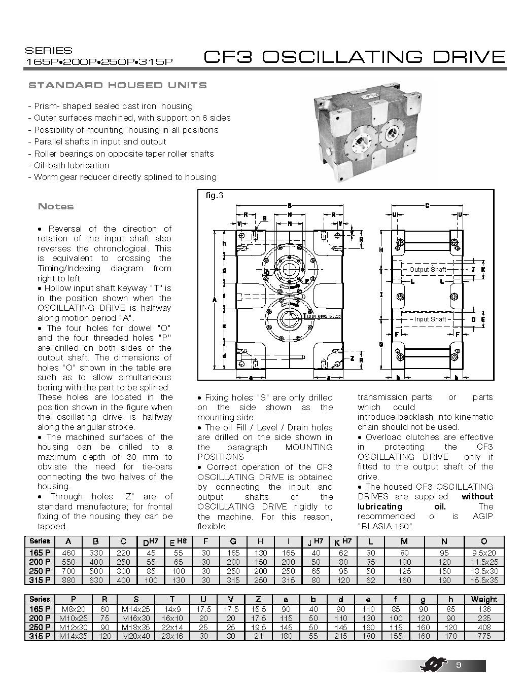 | 軸心距(mm): | 165 - 200 - 250 - 315 |