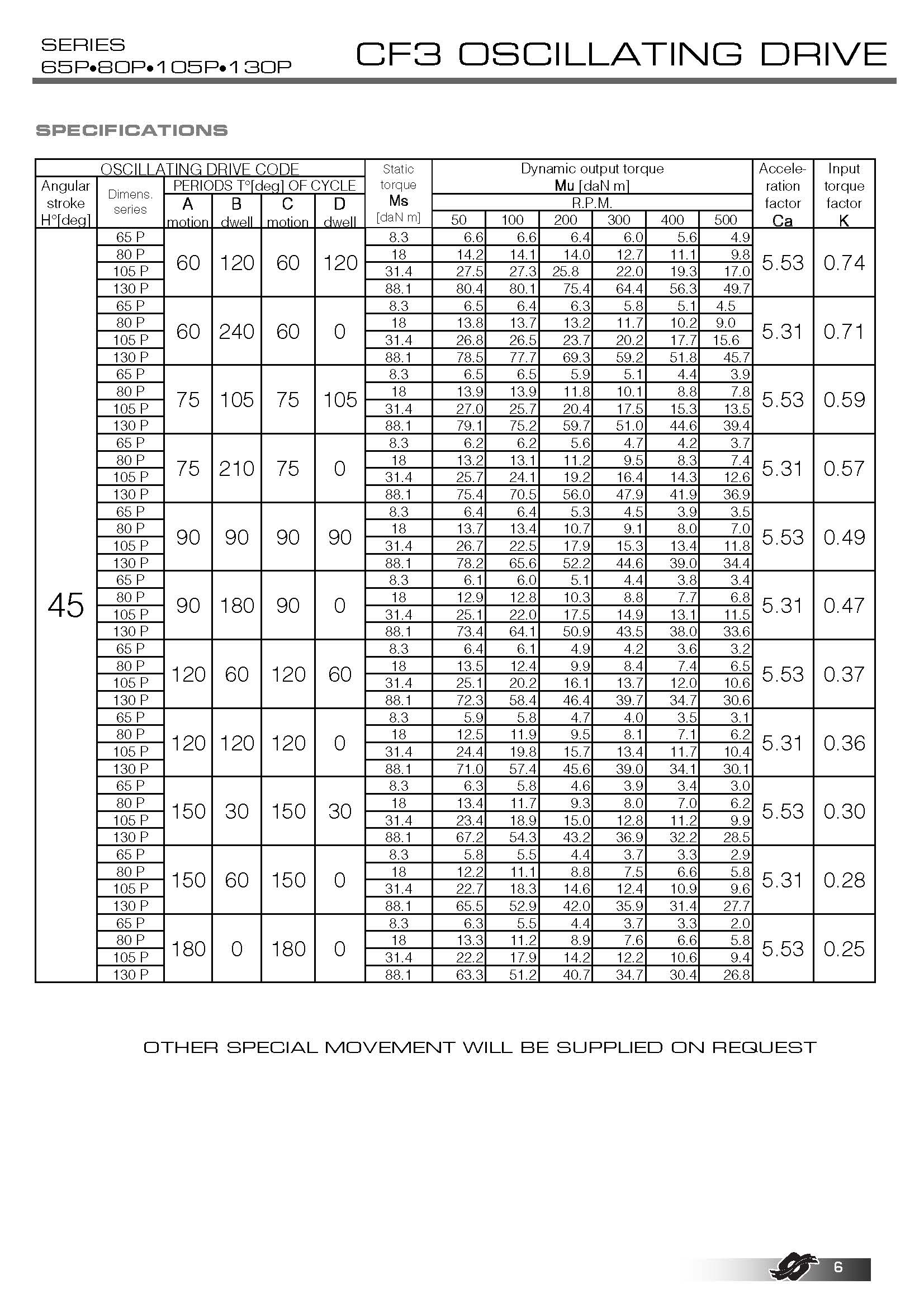 | 標(biāo)準(zhǔn)角行程: | 15° - 20° - 30° - 45° |