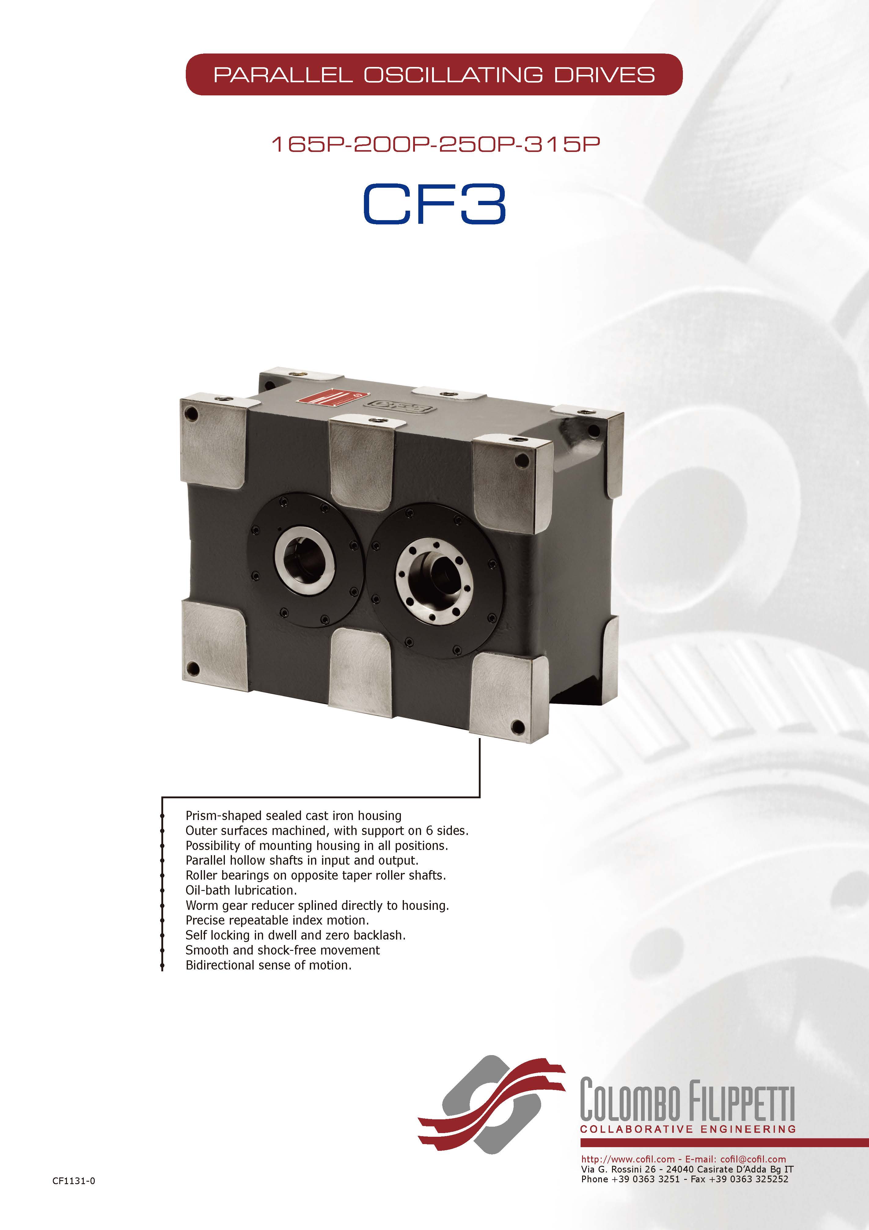 COLOMBO FILIPPETTI spa 的 CF3 擺動(dòng)驅(qū)動(dòng)器是具有互補(bǔ)輪廓的雙平面凸輪機(jī)構(gòu),用于將均勻的輸入旋轉(zhuǎn)運(yùn)動(dòng)轉(zhuǎn)換為輸出擺動(dòng)運(yùn)動(dòng)。