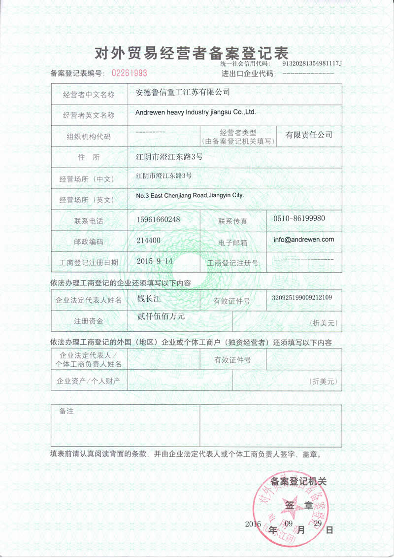 安德魯信重工江蘇有限公司